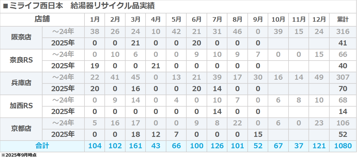 ミライフ西日本の関西支店では、取替後の使用済み給湯器を拠出することで『人に笑顔プロジェクト』に参画しています。 使用済み給湯器の回収率が上がるほど、循環型社会に向けて貢献することができます。