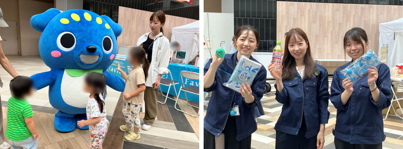 ペットボトルランタンづくりでは、使用済みのペットボトルを活用し、停電や災害時に役立つランタンの仕組みを紹介しながら、マスキングテープやシール、ペンを使って自由にデコレーション。実際に光らせる体験を通じて、楽しみながら防災意識を高める機会となりました。子どもたちは「自分だけの光」を作ることに夢中になり、完成したランタンを嬉しそうに手にしていました。無添加バスボムづくりでは、重曹やクエン酸など、安心・安全な素材を使って手作りを体験。素材の手触りや色の変化を楽しみながら、親子で協力して作る姿が印象的でした。また、ミライフ西日本、ミライフのマスコットキャラクターである「ミラわん」も登場し、会場を沸かせました。